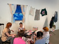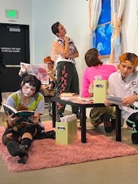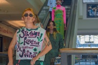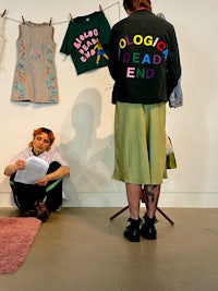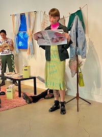 These experimental performance pieces are ongoing and meant to make queer history research public, accessible, and a multi-sensory experience. Each performance is made up of handmade clothing, Invert: A Queer Newspaper and a variety of research and books that explore queer history. They take place in public, unexpected places making space for questions like what happens when a fashion show disrupts a traditional museum opening? And how does the a mall become something new when art is introduced on its escalators?